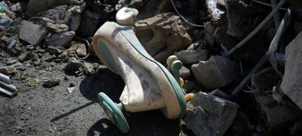 A child's toy lies in the debris of a building in the residential neighbourhood of Bashura in the Lebanese capital, Beirut.Photo: UNHCR
