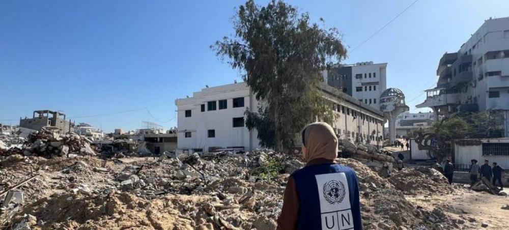 A UN Development Programme worker surveys damage at Al-Shifa Hospital in Gaza City.Photo: UNDP PAPP
